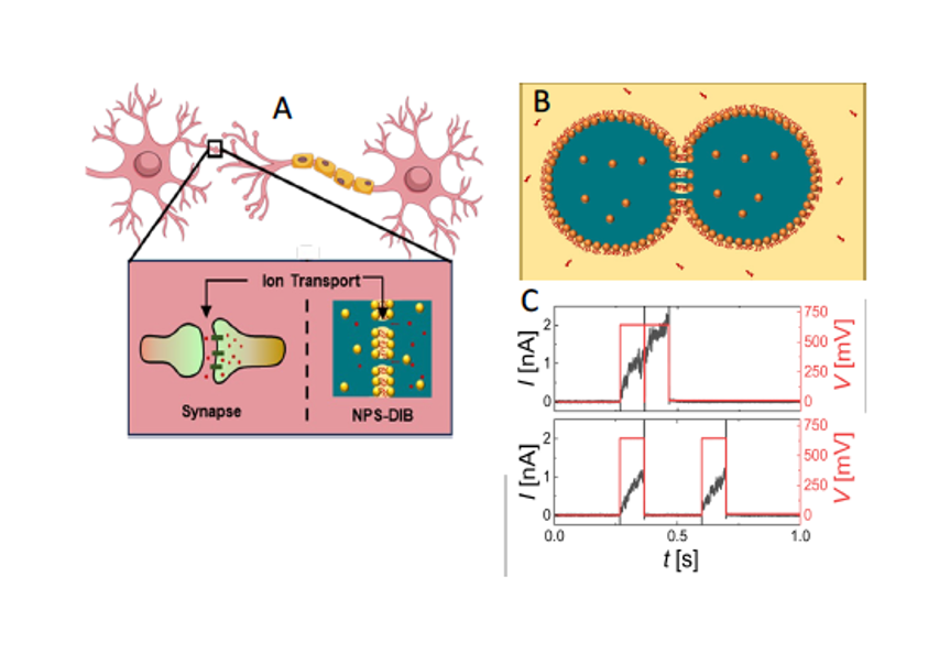 • Researchers in the Structured Liquids program discovered nanochannel formation in nanoparticle–surfactant droplet interface bilayers having ion- and size-selective transport and neuromorphic function
